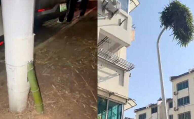 بامبوی شگفتانگیز شینچانگ: چگونه گیاه درون میله چراغ برق قد کشید؟/ عکس